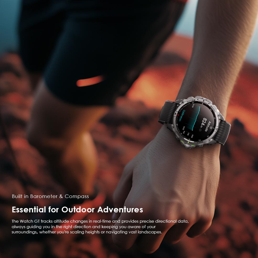 The Watch GT tracks altitude changes in real-time and provides precise directional data, always guiding you in the right direction and keeping you aware of your surroundings—whether you're scaling heights or navigating vast landscapes.