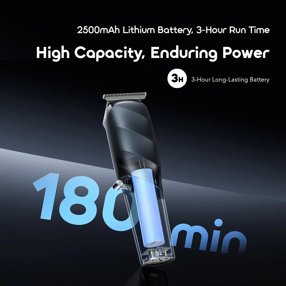 Equipped with a 2500mAh high-capacity battery, it provides up to 3 hours of runtime, allowing you to enjoy a precise haircutting experience without the need for frequent recharging.