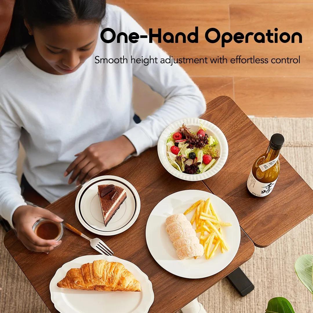 To lower the tabletop, press the gas lift while gently pushing down at the center of the panel.