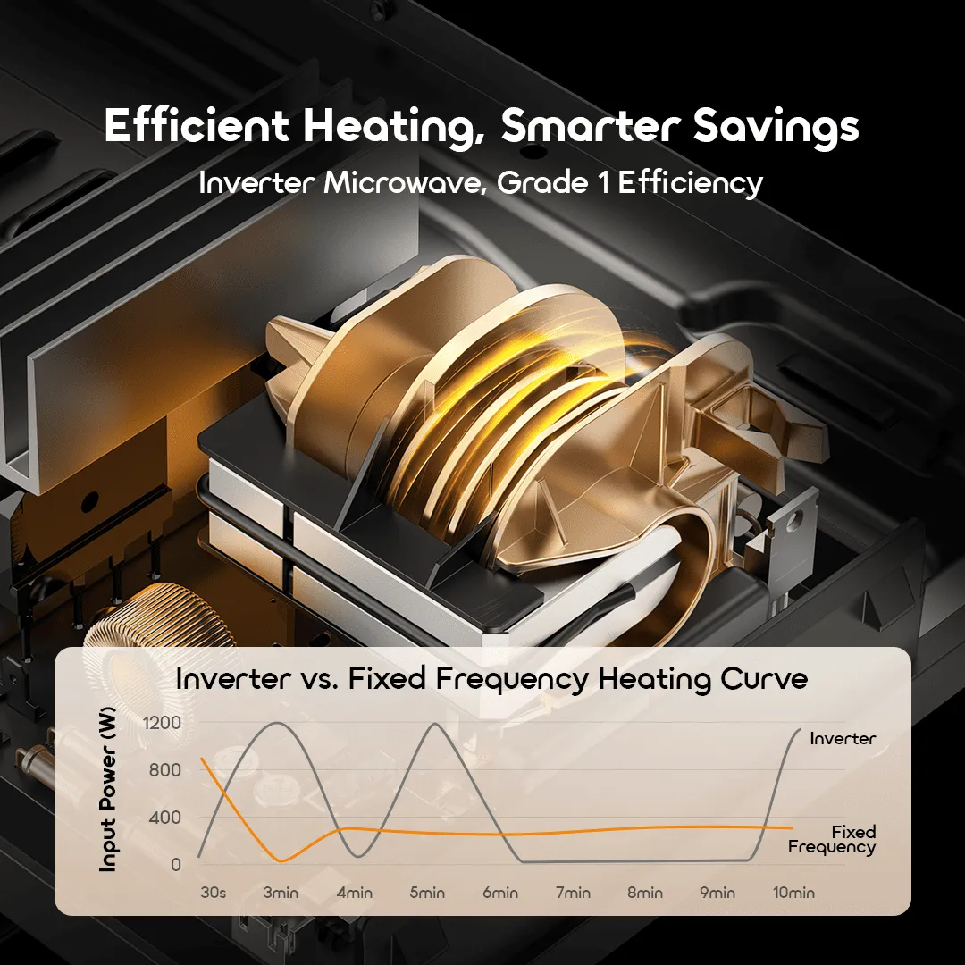 Runs at just 55dB—1.5 times quieter than standard microwaves. Say goodbye to noise disturbances and enjoy a comfortable cooking experience anytime