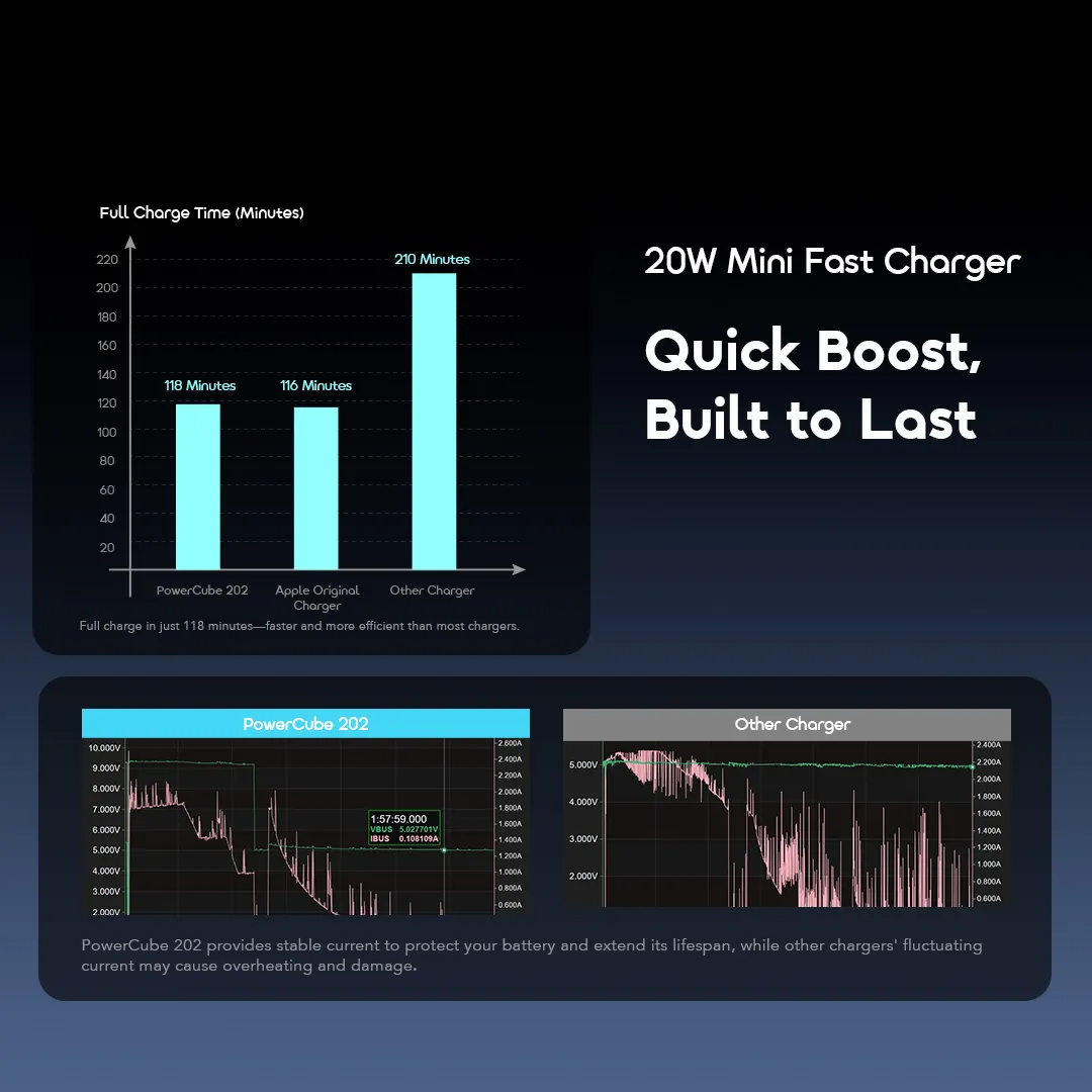 Powered by AniFast™ technology, PowerCube 202 intelligently adapts to your device's requirements, ensuring the fastest and safest charge every time.