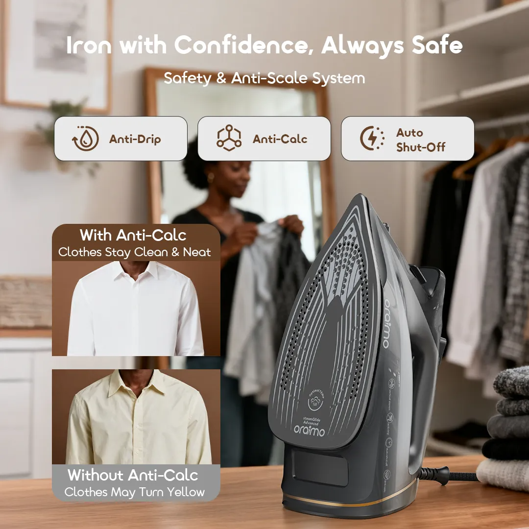 Equipped with anti-drip, anti-calc and auto shut-off functions, this iron ensures safe, reliable performance while extending its lifespan.