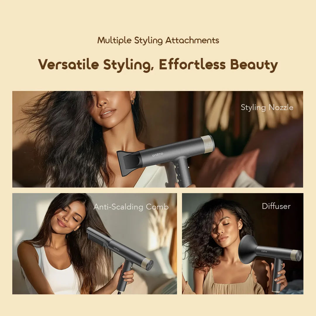 oraimo SwiftDry Hair Dryer x1 | Styling Nozzle x1 | Diffuser x1 | Anti-Scalding Comb x1 | Welcome Guide x1