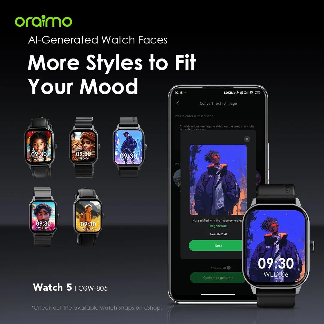 Download oraimo health app from the Apple App Store or Google Play and set up an AI-generating watch face. You can also choose from the available watch faces in the dial center or upload one from your album.