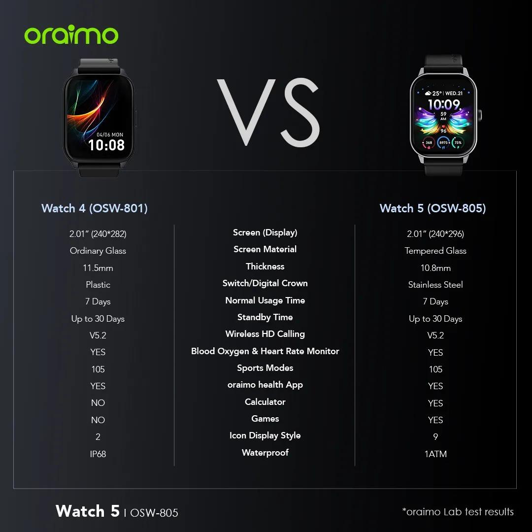 The oraimo Watch 5 is as thin as 10.8 mm and weighs only 41.4 grams. Its aluminum alloy case, paired with a stainless steel digit crown endows itself a stylish nature.
